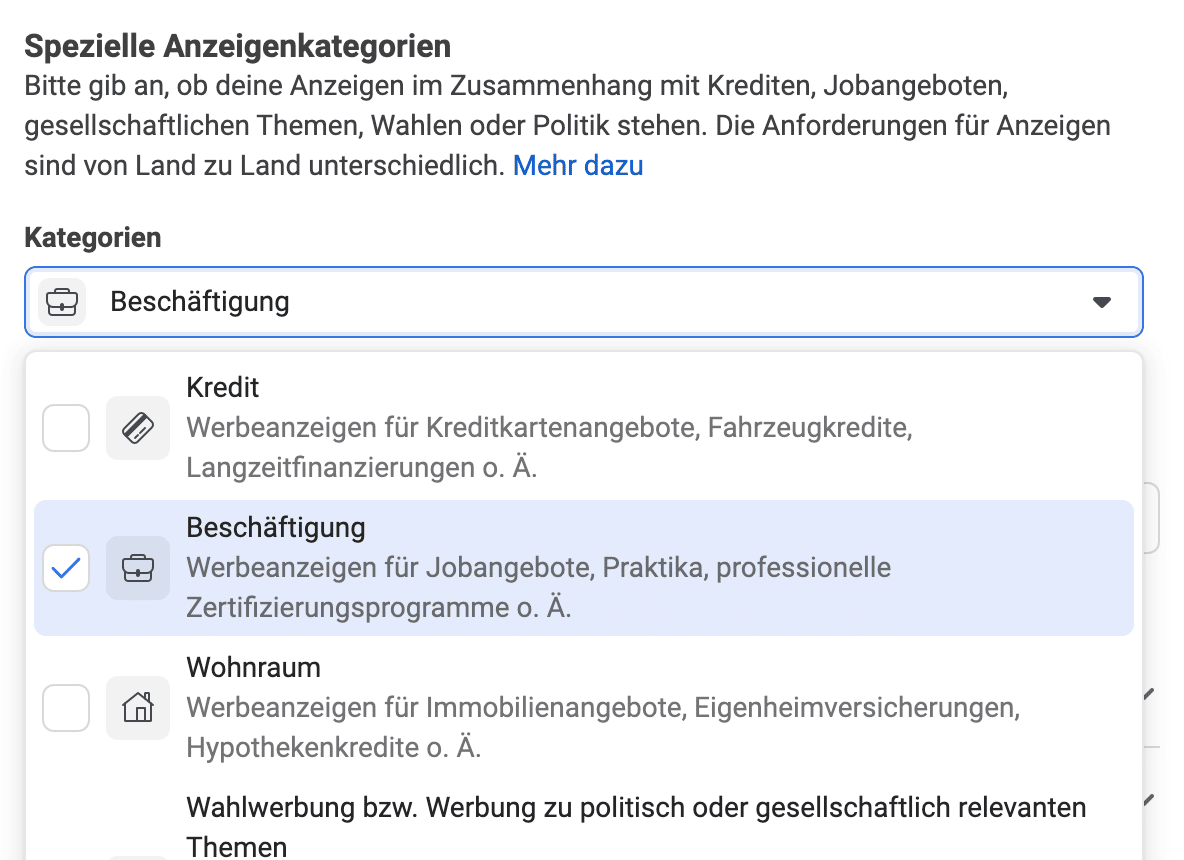 Dieser Interessenskonflikt entsteht vor allem dann, wenn du gezwungen bist, deine Kampagne innerhalb der “Special Ad Category” anzulegen.