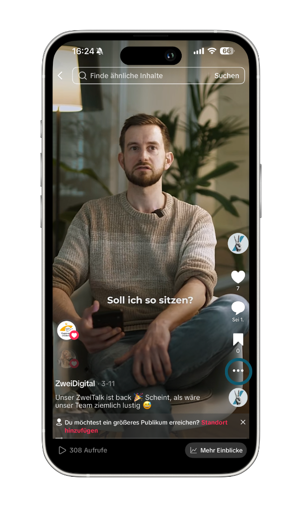 1. Tippt in dem Video, das ihr bewerben wollt, auf die drei Punkte unten rechts.
